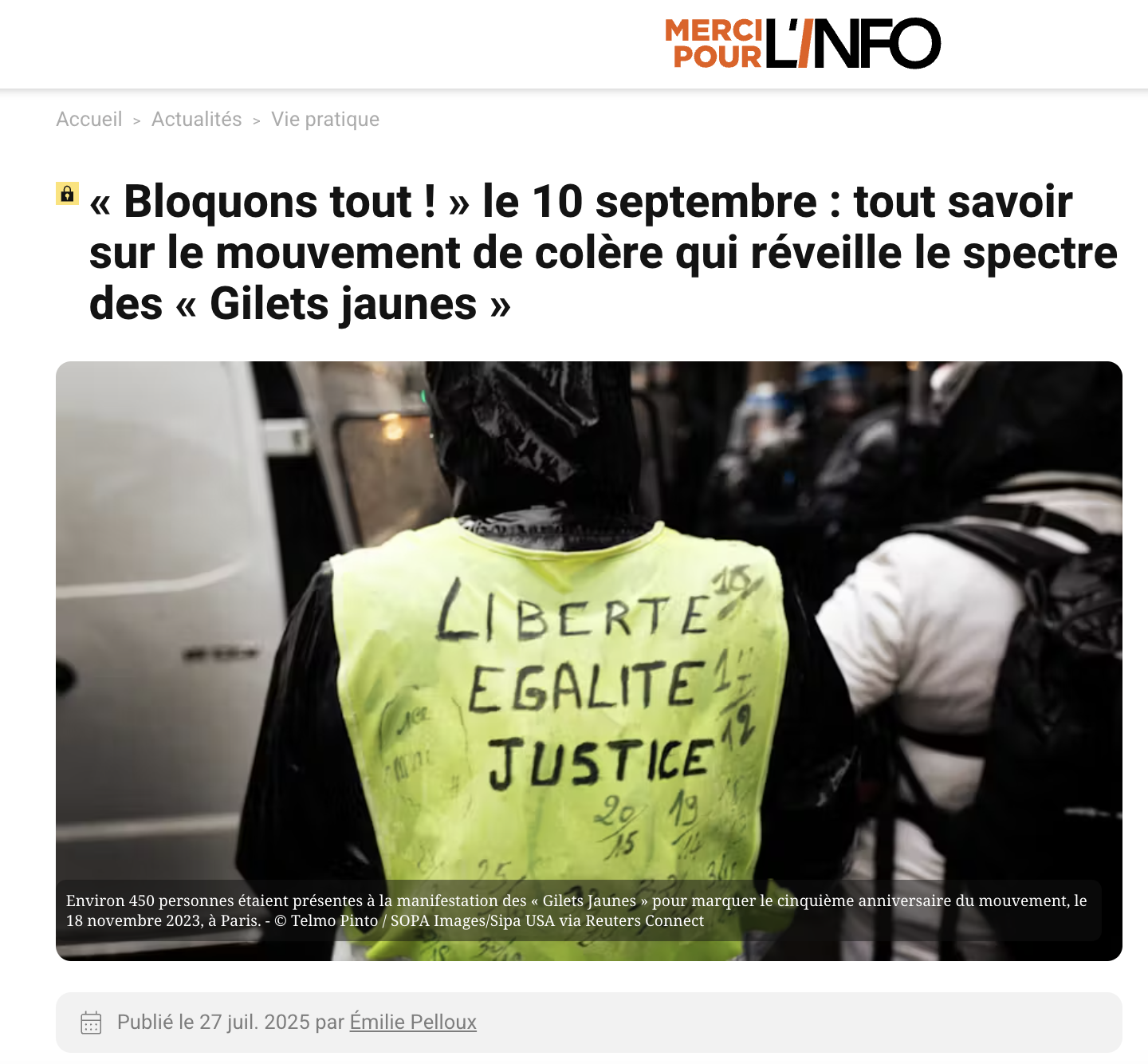 Et partout dans la presse, le mouvement social d'il y a sept ans est une référence omniprésente : des formules, "Le spectre des gilets jaunes revient", "à la manière des gilets jaunes" ; des questions, "nouveaux «gilets jaunes» ?", "Retour des Gilets jaunes ?", "Un nouvel «acte» des Gilets jaunes ?" ; des commentaires, "n'est pas sans rappeler le mouvement des gilets jaunes", "Ils font forcément penser aux Gilets jaunes" ou encore, "dont les contours font penser aux Gilets jaunes de 2018". Peut-être à raison : plusieurs similitudes peuvent être pointées du doigt - si ce n'est qu'une étincelle allumée sur Telegram et non pas Facebook, comme le soulignait Blast.