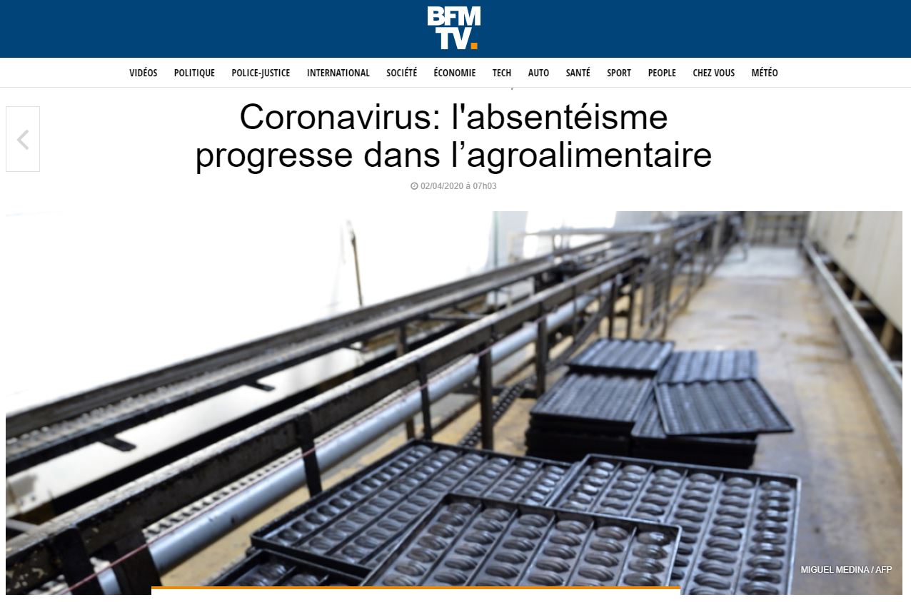 peut-on lire dans cette dépêche qui cite le baromètre de l'ANIA [...] Mais il est très différent selon les régions. Ainsi selon une enquête réalisée du 24 au 27 mars dans la région Île-de-France, très touchée par l'avancée du coronavirus, l'absentéisme « pourrait tourner autour de 40% en moyenne »."
