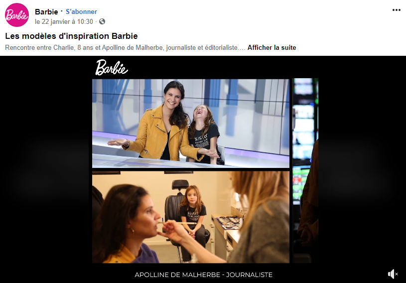 Jusqu'où peut aller le mélange des genres ? En ce début janvier, Barbie fait circuler sur Facebook des vidéos vantant les "modèles d'inspiration" de sa célèbre marque de poupées. Ce 21 janvier, face une petite fille qui veut devenir journaliste, "Charlie, 8 ans"