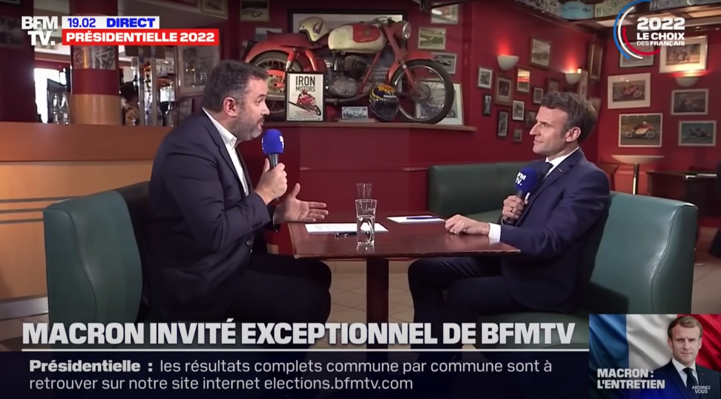 Carvin, 17 000 habitants. La ville, à mi-chemin entre Lens et Lille, a vu débarquer le président-candidat pour l'un de ces bains de foule qu'il multiplie depuis que Marine Le Pen menace de lui souffler l'Élysée. Pendant une heure, il a serré les mains, encaissé les reproches, fait des selfies. Puis Emmanuel Macron s'est installé face à Bruce Toussaint au "Bellevue", café quasi-centenaire, pour une interview d'une demi-heure en tête-à-tête diffusée sur BFMTV.
