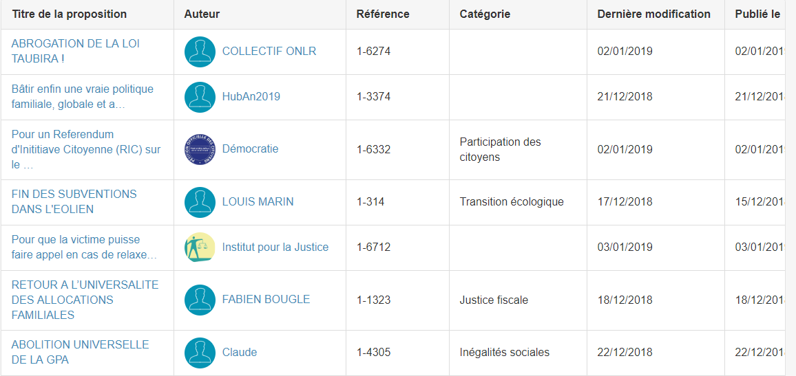 "Le débat n'était pas ouvert qu'aux Gilets jaunes, note Tellenne. Et d'ailleurs, je reprends l'idée du RIC, une revendication des Gilets jaunes, pour l'appliquer à la loi de bioéthique. Pour réunir des votes dans ce genre de consultation, ce qui compte c'est d'avoir un gros fichier de contacts. Ceux qui ont fait leur petite proposition dans leur coin, ils ont eu trois votes, en comptant leur femme et leur chien." La militante parvient, entre le 1er janvier (jour où elle découvre l'existence de la consultation) et le 4, à hisser une proposition en troisième position des plus votées. Mais pas au niveau de celle demandant le retrait de la loi Taubira, portée selon Frigide Barjot par la Manif pour tous. "Elle a été enregistrée par le collectif onlr, qui est de la Manif pour tous." Pour elle, il ne fait pas de doute que cette organisation s'est servie de listes de mails pour inciter ses sympathisants à voter pour ses propositions. "La Manif pour tous a un très grand réseau, c'est grâce à cela qu'ils ont réuni tant de votes. D'ailleurs, si Priscillia Ludosky [qui a lancé la pétition contre la hausse des carburants et figure des Gilets jaunes] s'était servie de ses fichiers réunissant les contacts des votants à sa pétition Change.org pour inciter à aller voter pour certaines propositions, elle faisait un strike!"