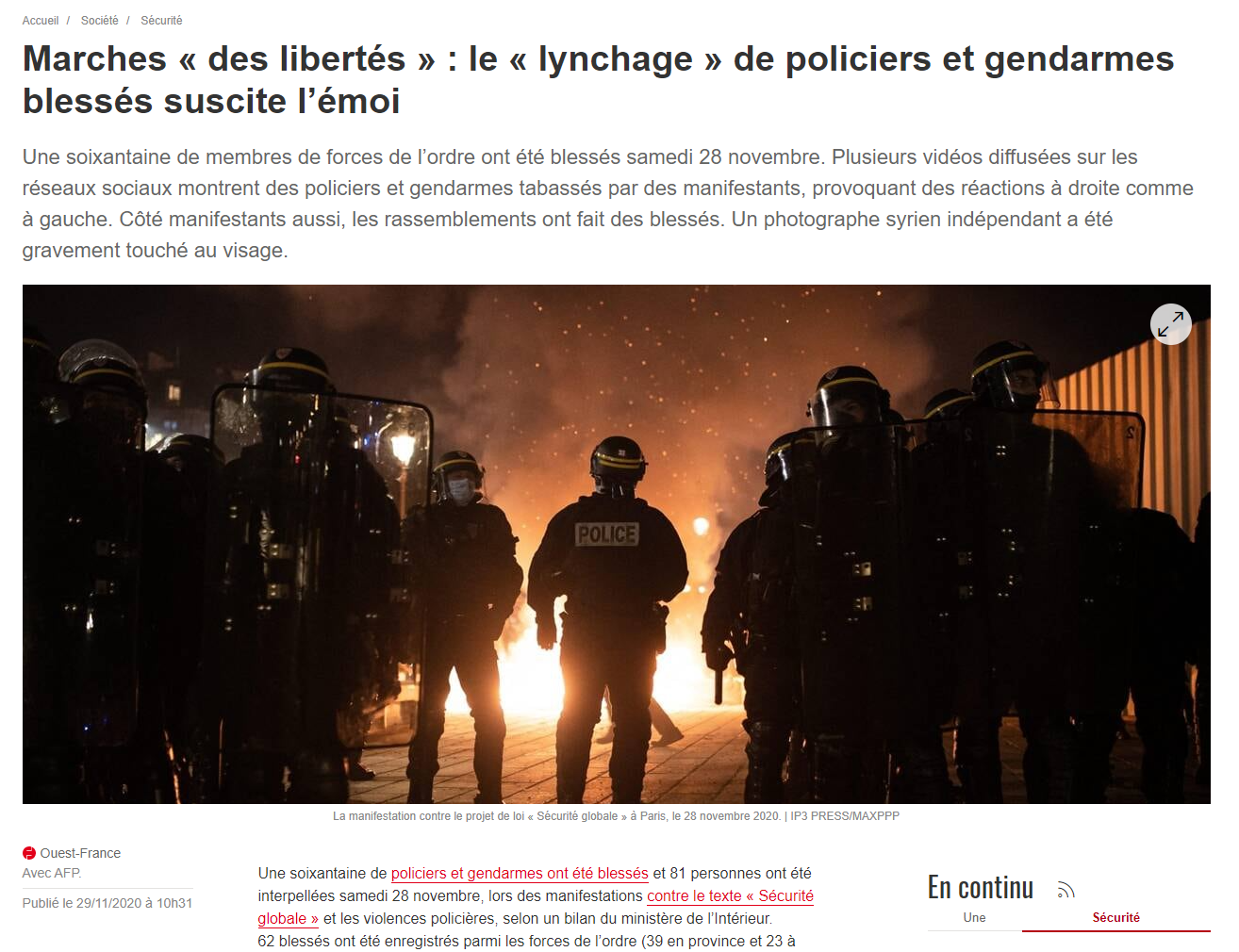 Deux jours avant, samedi 28 novembre, Yazid a filmé avec son téléphone les affrontements entre police et manifestants pendant la "Marche des Libertés" contre l'article 24 de la Loi sécurité globale, entre République et Bastille. Affrontements qui auraient fait, selon le dernier décompte, 98 blessés du côté des policiers. Ces violences, et peut-être singulièrement celles subies par la police, feraient l'objet d'une enquête préliminaire ouverte par le procureur de la République de Paris cette semaine, selon l'avocat Arié Alimi. Ce qui expliquerait la volonté de la Sécurité territoriale de visionner les images tournées par Yazid.