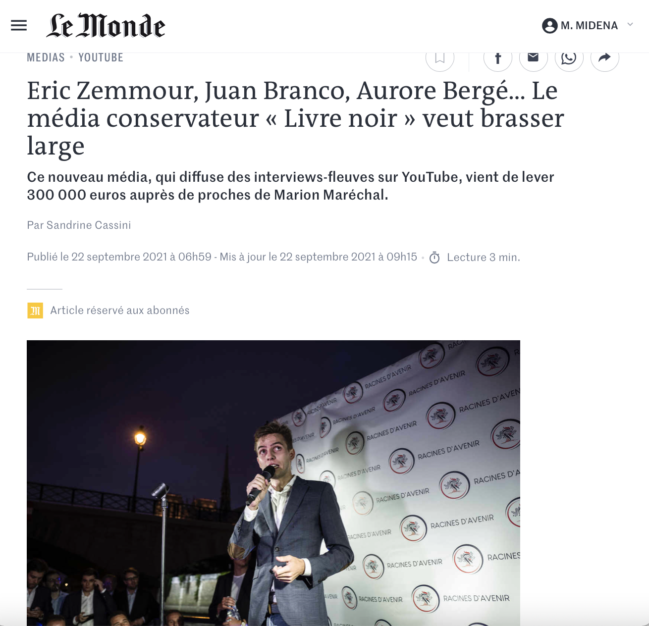 Il est rémunéré en tant que journaliste depuis deux mois. Son média, la très zemmourienne chaîne YouTube Livre Noir