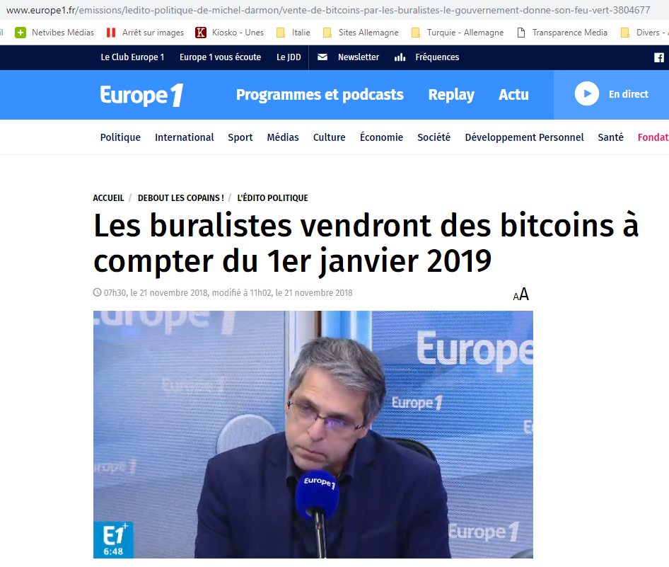 ". Le titre est d'Europe 1, et a depuis été supprimé, remplacé par : "Les buralistes vendront des bitcoins à compter du 1er janvier 2019