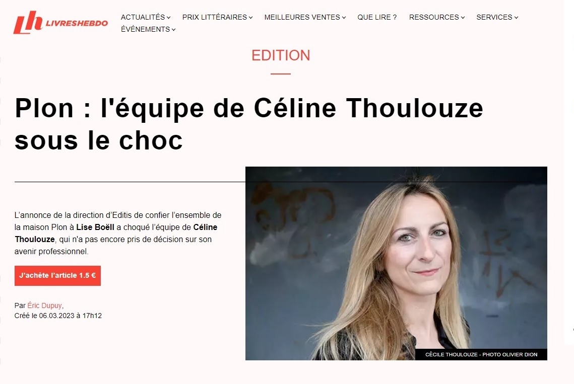? L'article "Plon : l'équipe de Céline Thoulouze sous le choc"