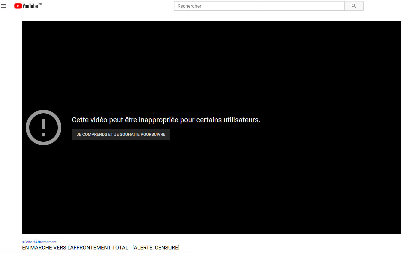 avait été signalé, dans des vidéos qui ne contenaient rien de sexuel - il s'agissait de vidéos sur les manifestations de Gilets jaunes).