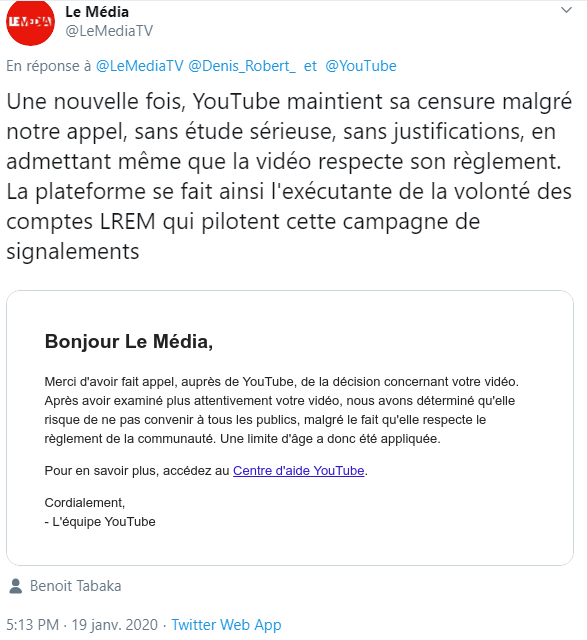 "Censure" du Média ? Ou l'éternel flou de YouTube