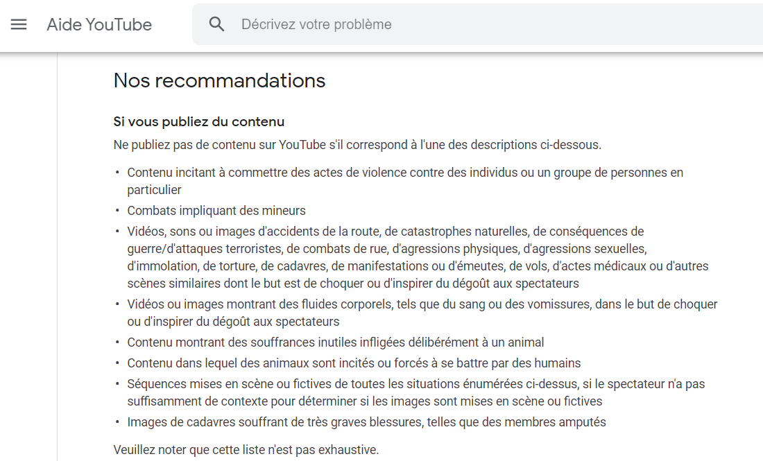 Restriction n'est pas non plus démonétisation ou suppression de la vidéo (ou de la chaîne s'il y a "récidive"