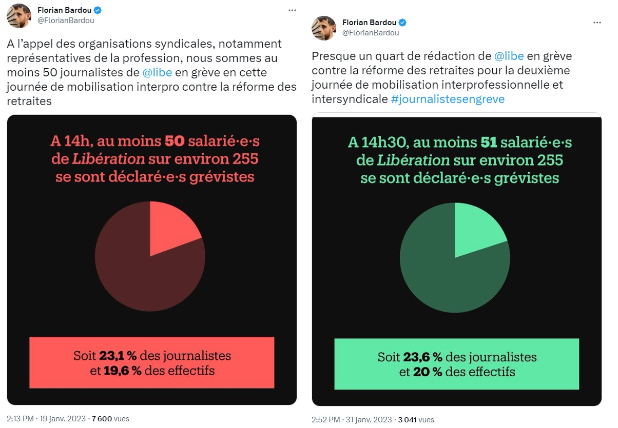 , près d'un quart des journalistes ont fait grève les 19 et 31 janvier. Le 19, premier jour de mobilisation, ils étaient "au moins 50 salarié·es"