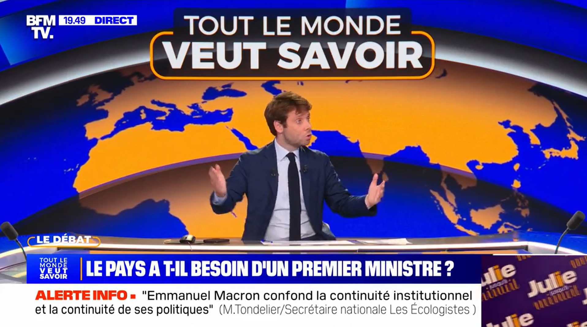 Le présentateur-passe-plat Benjamin Duhamel voudrait "qu'on s'arrête une seconde sur ce qu'on a entendu de la part des oppositions, «déni de démocratie», «coup de force»
