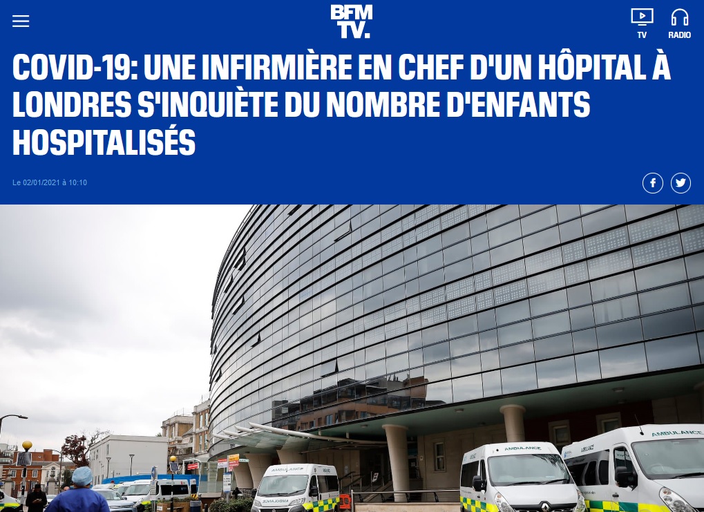 Aucun des deux médias n'indique cependant avoir cherché à vérifier la réalité de ces affirmations gravissimes, dont l'écho fut immense sur les réseaux sociaux au Royaume-Uni, et ailleurs. Pourtant, dès le matin du samedi 2 janvier, plusieurs médecins et consultants en pédiatrie, bons connaisseurs de ces hôpitaux, diffusent de très fermes démentis sur Twitter. Côté français, plusieurs grands médias tels que Le Figaro, BFMTV, Ouest-France et La Dépêche oublient aussi de vérifier la réalité de ces faits, publiant toute la journée du 2 janvier des articles alarmistes, massivement relayés sur les réseaux sociaux. Au même moment, The Telegraph supprime en douce son interview, aucun média britannique ne parvient à confirmer l'information, puis un démenti furieux est diffusé par l'association représentative des pédiatres anglais, rappelant que les services pédiatriques sont pleins de manière habituelle en hiver : "Nous n'observons pas de pression significative du Covid-19 dans les services pédiatriques du Royaume-Uni. (...) Le nouveau variant touche toutes les classes d'âges."