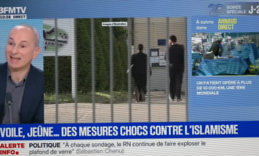 Le 25 novembre, la rubrique "médias" de l'émission de TMC Quotidien revient sur la couverture des propositions de la droite sénatoriale censées lutter contre l'islamisme. Le journaliste Julien Bellver présente, parmi d'autres extraits, un montage censé montrer que "ce rapport est raciste selon ses détracteurs, les musulmans étant une nouvelle fois montrés du doigt".