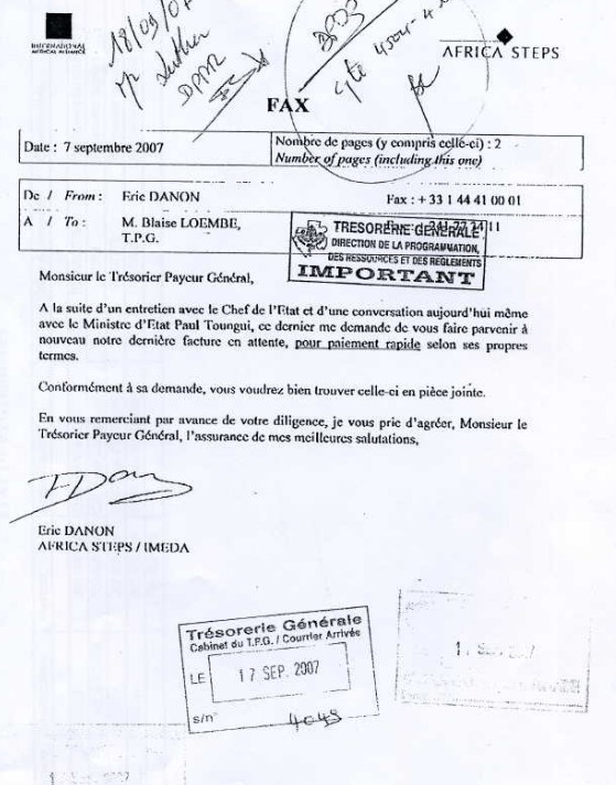 Bonus : le site dispose même de fac-similés des relances de Danon à la Trésorerie générale du Gabon.