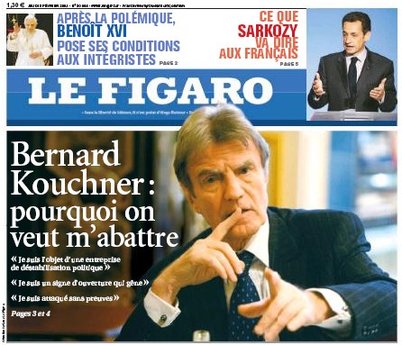 La première fois que le grand public a entendu un écho des accusations portées par le livre, c'était sur Europe 1, le 12 janvier. Un Jean-Pierre Elkabbach extrêmement embarrassé y interroge Kouchner sur ses relations avec "certains états, dont le Gabon".
