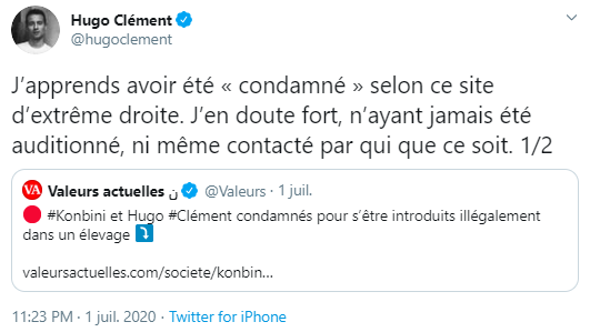 Un cas légèrement différent est celui de la récente condamnation de Konbini. Le journaliste Hugo Clément, qui a depuis quitté Konbini