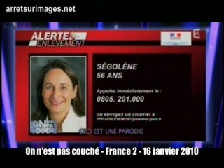 Mais quelle surprise ! Samedi soir, Laurent Ruquier, dans son émission hebdomadaire On n'est pas couché !, (France 2) s'autorise une petite pique sur la disparition de ... Royal. Et, ô hasard, une belle alerte enlèvement, avec tout le toutim.
