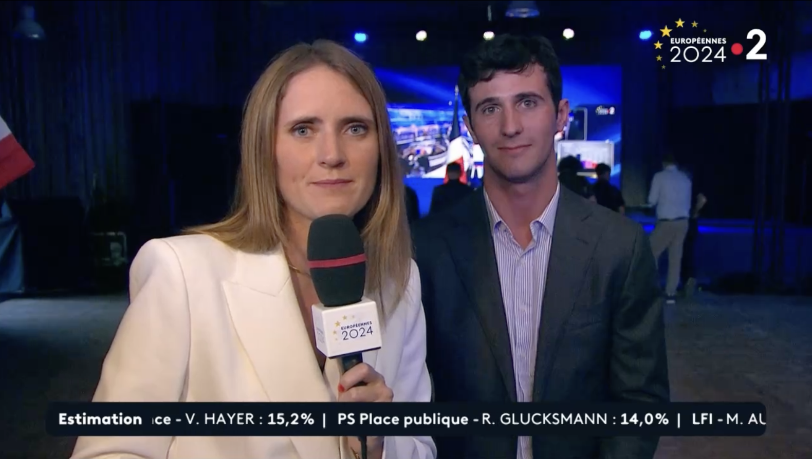 France 2 fait alors le tour des QG de campagne. "On va partir retrouver Caroline Motte, au QG du Rassemblement national. Caroline, je crois que vous êtes avec un jeune militant du RN de 22 ans", annonce Anne-Sophie Lapix.