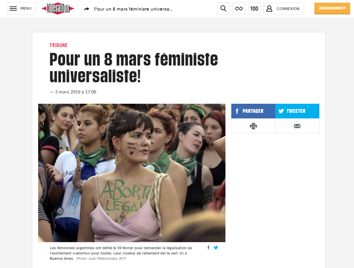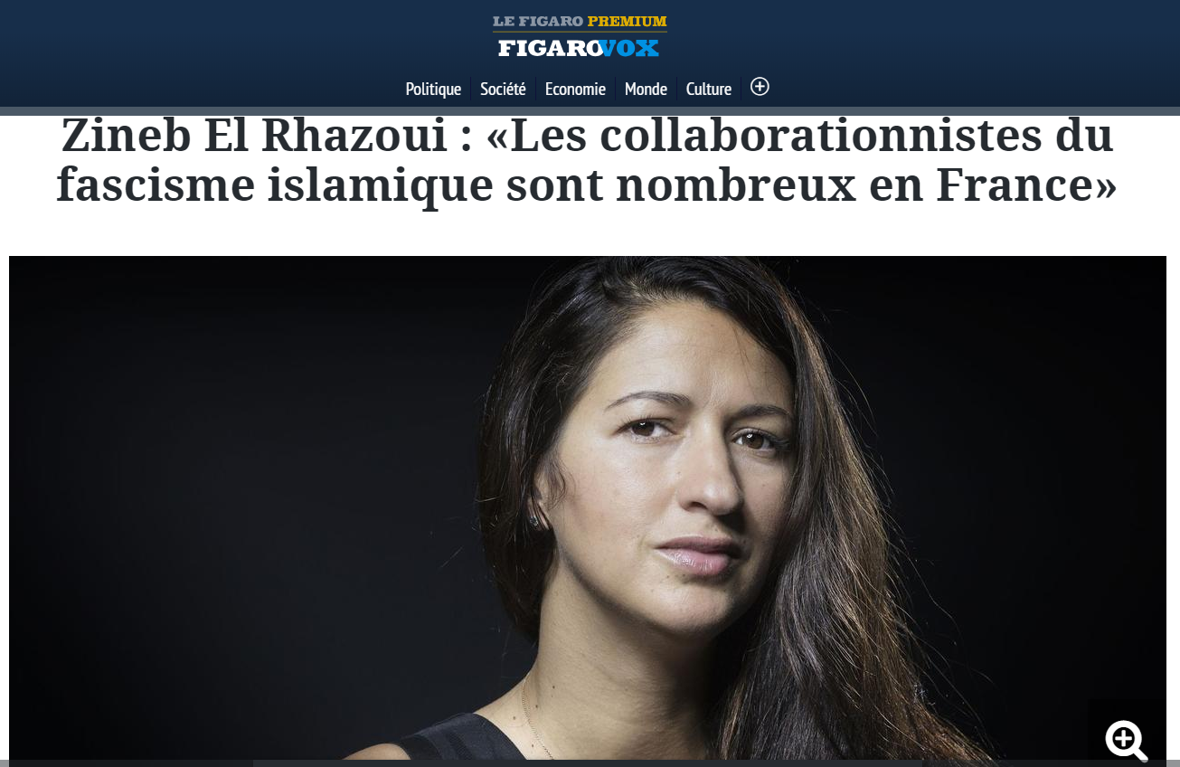 est de manière générale une plateforme prisée des féministes universalistes. Zineb El-Rhazoui s’y est exprimée trois fois depuis 2016. Céline Pina, signatrice de la tribune de Libération, a publié des dizaines de tribunes sur le site de débat du Figaro. Le site de droite dure semble heureux d’avoir trouvé, dans sa lutte contre l’Islam, des alliées au discours féministe, issues de la gauche.