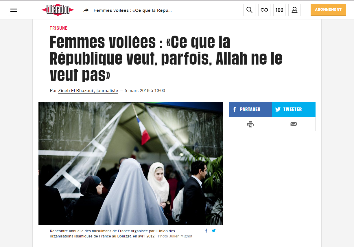 Dernier exemple en date de cette désormais classique opposition autour de la question du voile : ces derniers jours, c'est Libération