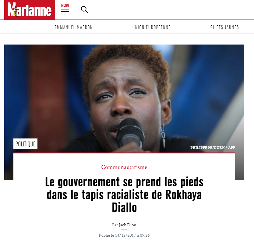 Le ton est bien différent lorsqu'il s’agit d’évoquer dans l’hebdomadaire les idées de Rokhaya Diallo, "entrepreneuse identitaire