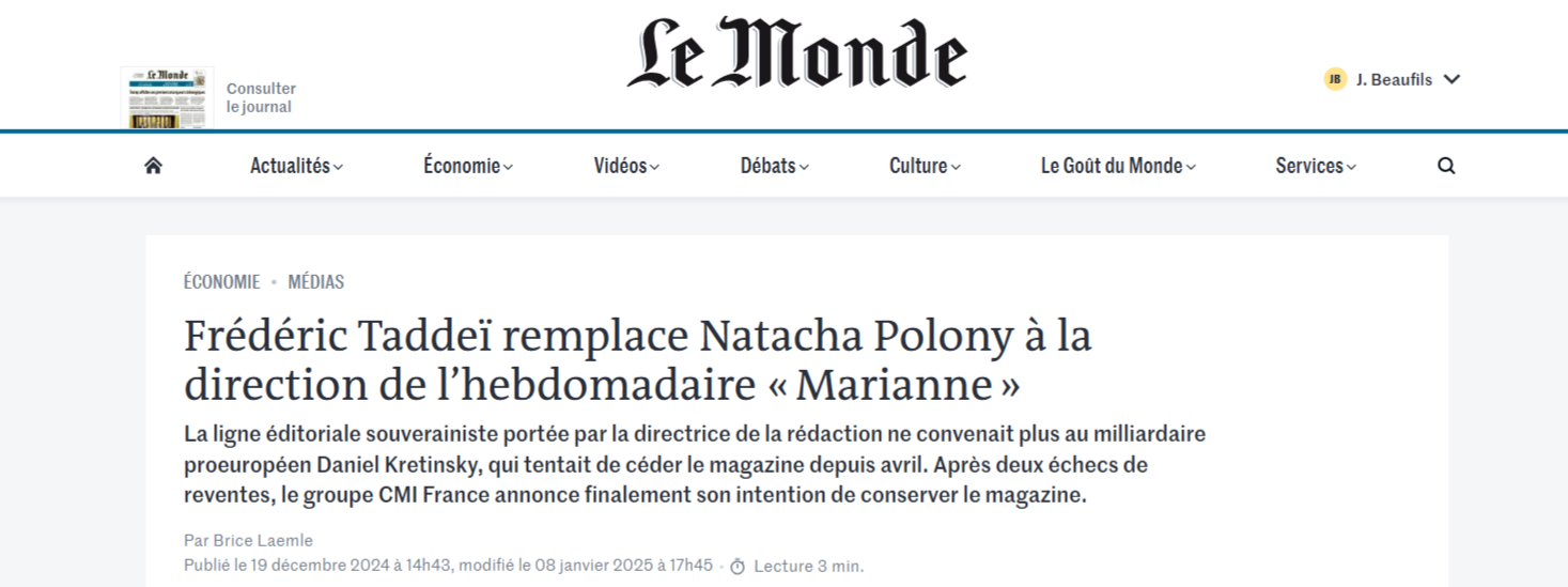 En ce début 2025, l'équipe du journal navigue en plein brouillard : l'homme d'affaires tchèque Daniel Kretinsky, qui possède CMI et donc Marianne
