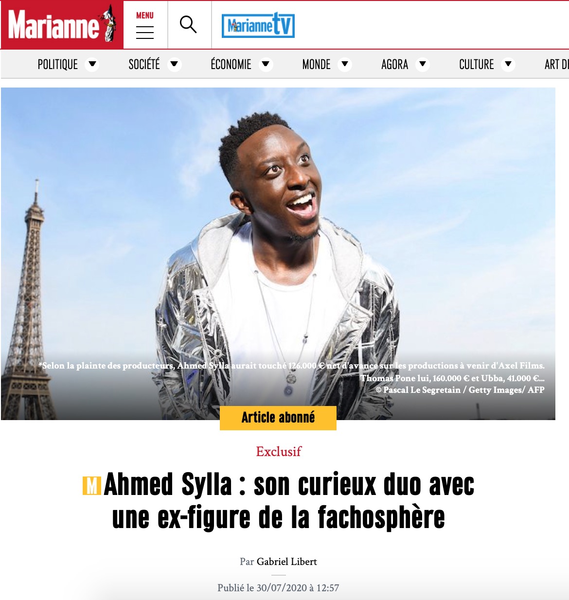 En août 2020, Marianne publie une enquête, signée Gabriel Libert, sur un conflit qui agite le monde feutré du cinéma ; Gabriel Libert a refusé de s'exprimer auprès d'ASI. Deux producteurs, Marc Fiszman et Christophe Cervoni, accusent Thomas NLend de les avoir escroqués en empochant 160 000 € pour l'écriture d'un scénario qu'il n'aurait jamais rendu, avant de plier bagages. De son côté, Thomas NLend affirme avoir rendu le travail demandé, mais faire face à un refus de payer des deux producteurs. Ce que les deux producteurs ignoraient, disent-ils, c'est que celui qui se présentait comme Thomas Pone, un scénariste ami de l'humoriste Ahmed Sylla, était en fait Thomas NLend, figure bien connue des milieux soraliens et des spécialistes de l'extrême droite. "Au départ, j’ai un litige commercial avec lui, raconte Marc Fiszman à Arrêt sur images. En réglant ce litige, je m’aperçois que j’ai pas du tout signé avec Thomas Pone, comme il se présentait, mais avec Thomas NLend. Et au moment où je me suis rendu compte de qui il était vraiment, j’ai appelé tout Paris, pour leur dire de se méfier."