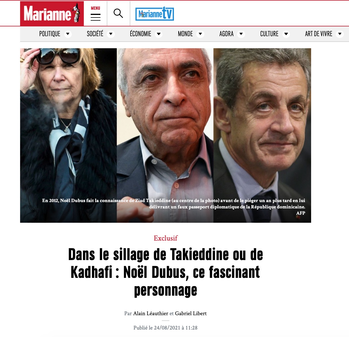 En août 2021, Marianne flaire l'embrouille. Un an après l'épisode NLend-Sylla, le magazine publie, toujours sous la plume de Gabriel Libert et Alain Léauthier, une enquête fleuve sur un "escroc, mytho, barbouze" mis en examen dans l'affaire Takieddine (voir le deuxième épisode de cette enquête) : Noël Dubus, alias Monsieur Antoine, plusieurs fois condamné pour "escroqueries, association de malfaiteurs ou trafic de fausse monnaie", écrit Marianne. Des informations qu'ASI a pu confirmer. Dubus, écrit Marianne
