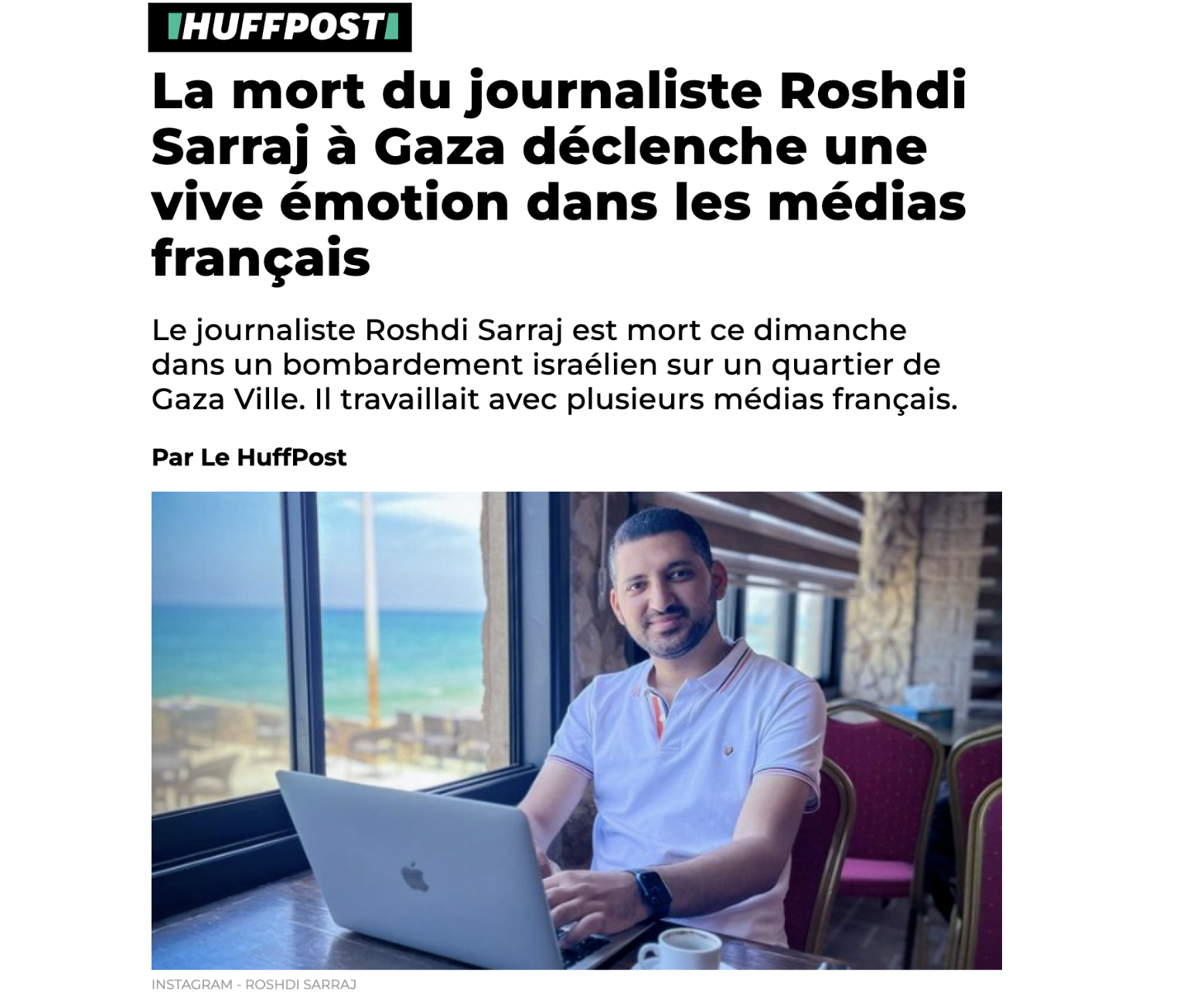 Roshdi Sarraj. Ce nom, c'est toute une profession qui exige de ne pas l'oublier. Il était reporter à Gaza. Il était le fixeur de nombreux médias français, comme Radio France ou le Monde. Il a été tué par une frappe israélienne dans l'enclave palestinienne, le 22 octobre.