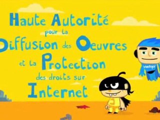 "HADOPI est l’acronyme de «Haute Autorité pour la Diffusion des Œuvres et la Protection des droits sur Internet», du nom de l’organisme de régulation créé par cette loi. Ce court film d’animation nous présente les principales mesures de «riposte graduée» mises en œuvre par la HADOPI pour lutter contre le téléchargement illégal de musiques et de films sur Internet." explique la présentation de la vidéo |