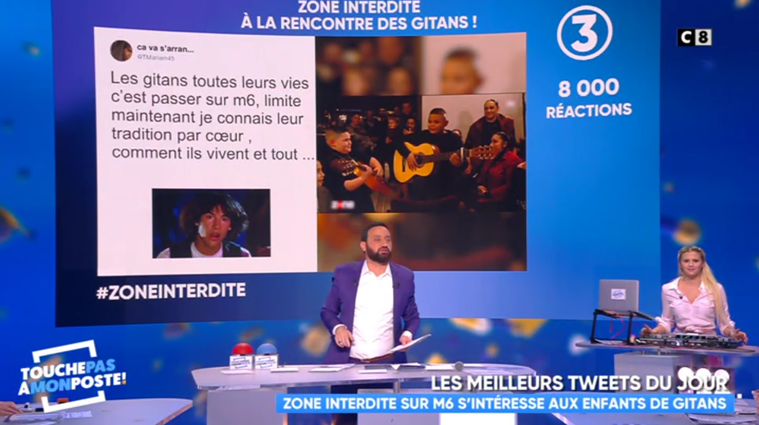Premier constat : chez Hanouna, il y en a pour tout le monde. Qu'on soit blanc, noir, en chaise roulante, on est là pour se faire vanner. Entend-on, ailleurs, un animateur saluer "la communauté gitane [qui] nous regarde beaucoup, je les salue tous, on se marre bien à chaque fois quand on se croise