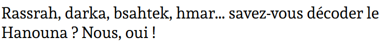 Pour les incultes, "darka", c'est "rigolade", "rassrah", c'est plutôt le stress, l'angoisse. Des mots appris, disait Hanouna au Monde