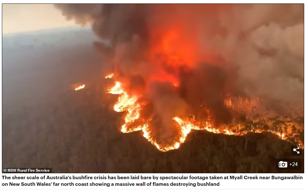 Fausses images, vraies images, montages assumés... Les photos et vidéos des incendies qui ravagent depuis plusieurs semaines une partie de l'Australie sont en passe de devenir iconiques, comme ces images diffusées à partir de la mi-novembre par le service des sapeurs-pompiers ruraux de la Nouvelle-Galles du Sud (l'un des foyers majeurs des incendies), et reprises notamment par le Daily Mail