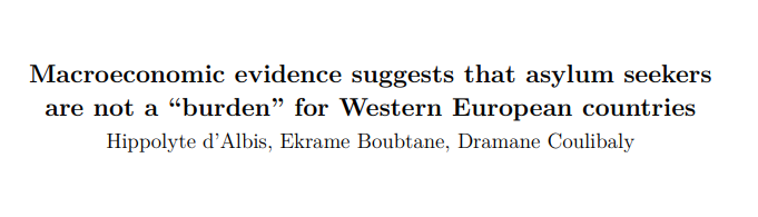 Récemment, une étude menée par trois chercheurs français associés au CNRS (Ekrame Boubtane, Dramane Coulibaly et Hippolyte d'Albis), est titrée "Des preuves macro-économiques suggèrent que les demandeurs d'asile ne sont pas un «fardeau» pour les pays d'Europe de l'Ouest