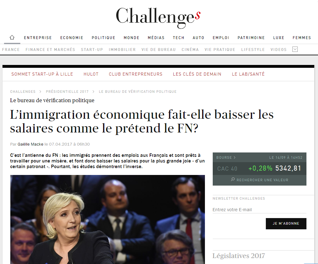 En 2017, en réponse aux propos de Marine Le Pen, Challenges