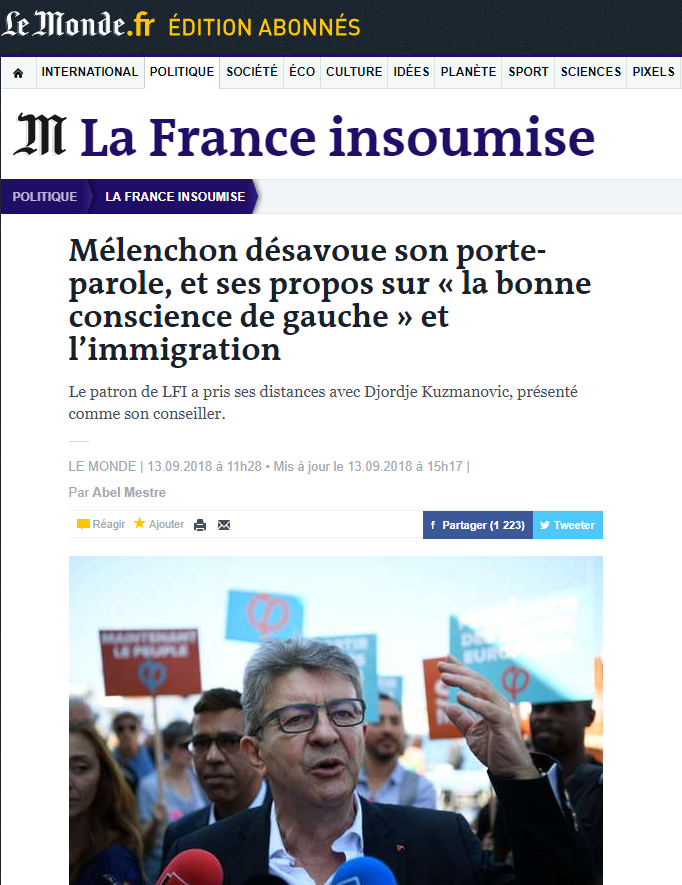 La semaine dernière, c'était la France Insoumise (FI) qui s'exprimait sur le sujet. Son chef de file, Jean-Luc Mélenchon, a tenu à se distancier d'un de ses porte-paroles, Djordje Kuzmanovic. En cause, une interview de ce dernier donnée à L'Obs