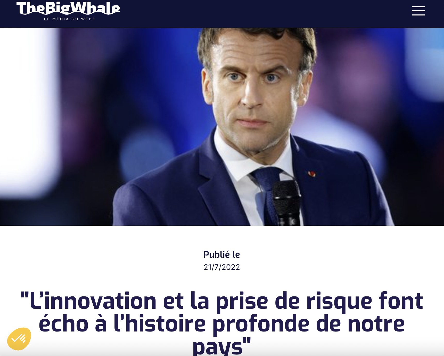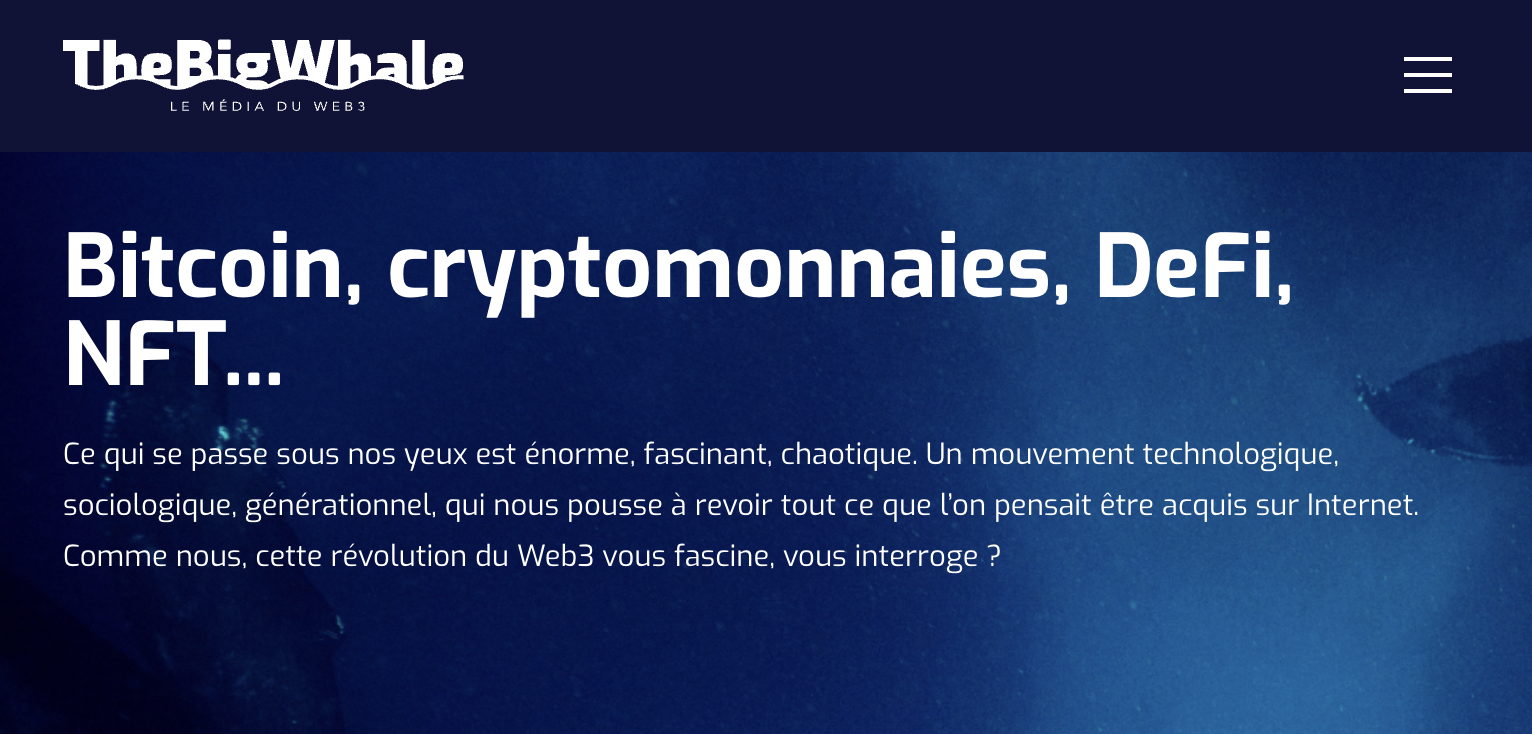 Pas de quoi émouvoir Raphaël Bloch : "Qui a dit que le web3 était parfait ? C’est sûr qu’il y a un coût énergétique, mais les technologies s'améliorent", avance-t-il en prenant l'exemple de la cryptomonnaie Ethereum. Une préoccupation qui s'incarnerait dans le nom de son média, TheBigWhale ("la grande baleine") : la baleine, écrivent les fondateurs, "symbolise la longévité, la permanence, car le Bitcoin, les