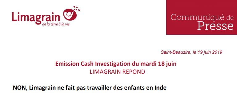 Après la diffusion, le groupe Limagrain a tenté de refaire le match. "Non, Limagrain ne fait pas travailler des enfants en Inde", affirme la multinationale dans un communiqué publié le 19 juin. "Les images vues dans le reportage sont choquantes. Mais ce que l’on a vu, ce ne sont pas des sites Limagrain" assure le semencier. Certes. Mais le Cash de la veille n’a pas prétendu autre chose. "A aucun moment, on ne dit avoir vu des enfants travailler en Inde pour Limagrain", précise à juste titre le rédacteur en chef de l’émission Emmanuel Gagnier, joint par Arrêt sur images.