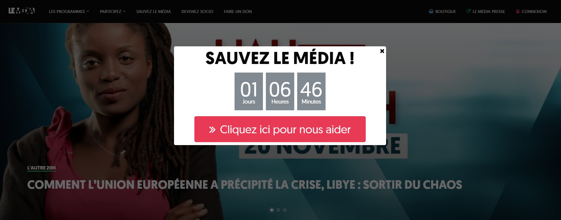 Sur le site de la webtélé, le compte-à-rebours égrène les minutes. Les Socios ont encore quelques heures pour effectuer un don et "sauver le Média". Pour l’heure, l’objectif de 90 000 euros est loin d’être atteint. Il en manque encore les deux tiers. Moins d’un an après son lancement, plombé par les luttes intestines, et les difficultés financières, l’avenir de la webtélé est aujourd'hui en suspens.