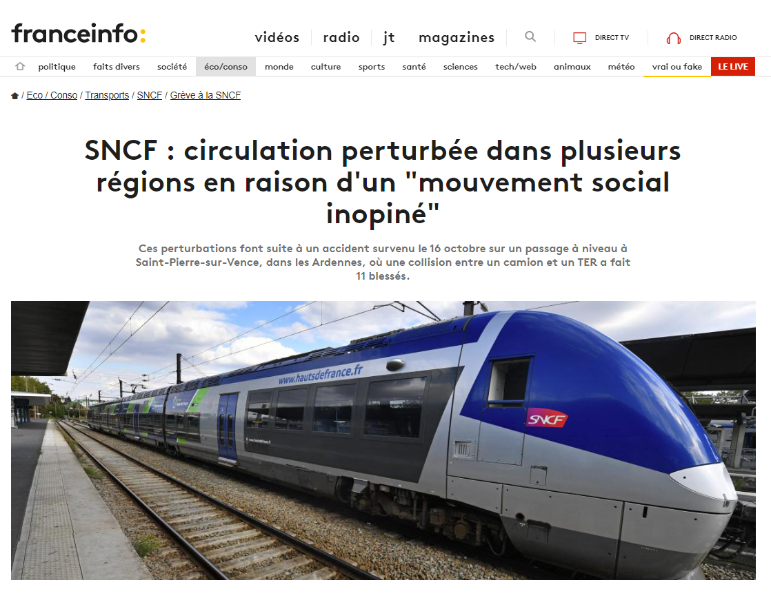Pour une surprise, c'est une surprise. "Suite à une grève sans préavis, les circulations sont perturbées ce matin dans plusieurs régions depuis le début du service"