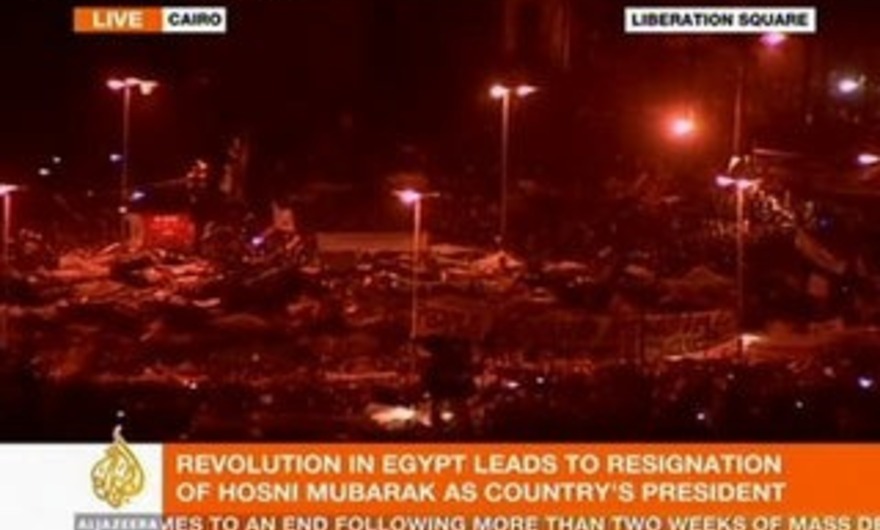 Des images fortes de la place Tahrir, retransmises et commentées en direct sur Al-Jazeera, la chaîne d'info qatarie qui suit le "printemps des peuples" arabe de très près depuis le mois de décembre. Emotion, déclarations, cris de joie et légers flottements à l'antenne, on suit en direct l'événement en train de se faire.