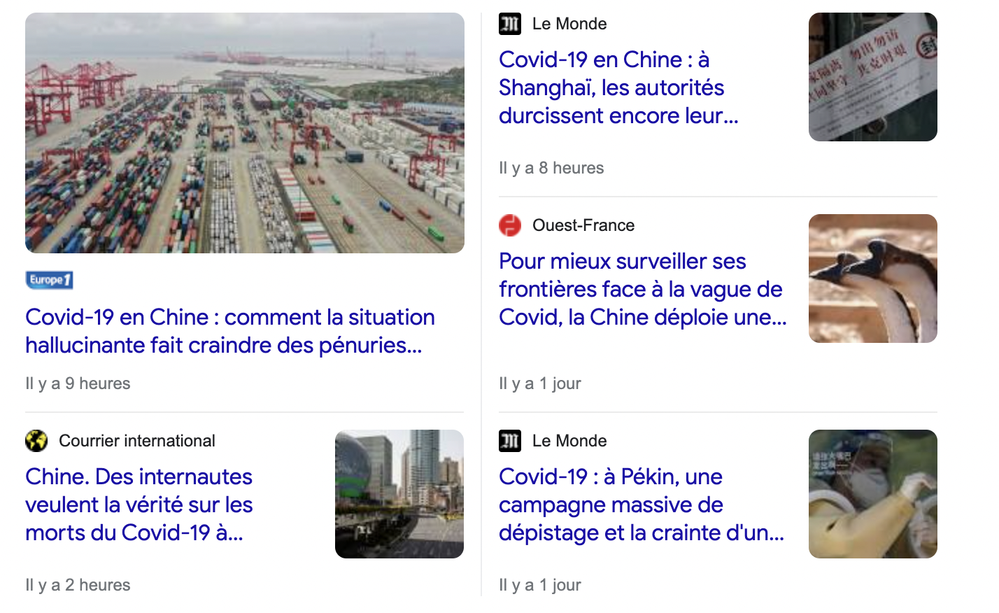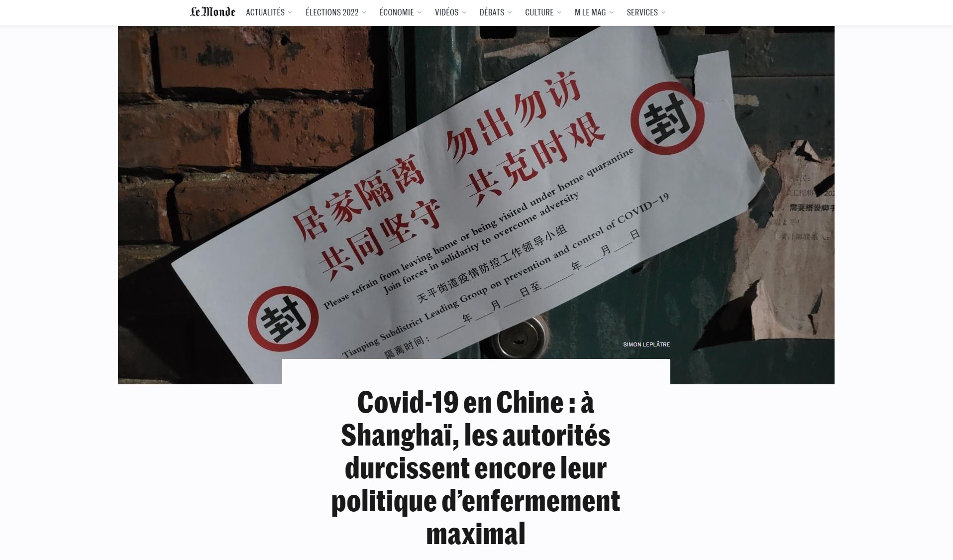 La guerre en Ukraine et la présidentielle sont certes passées par là. Et s'il est question du Covid c'est surtout… en Chine ! Selon nos calculs, dans les deux dernières semaines, à compter du 14 avril, 18 articles directement consacrés à l'épidémie ont été publiés dans le Monde