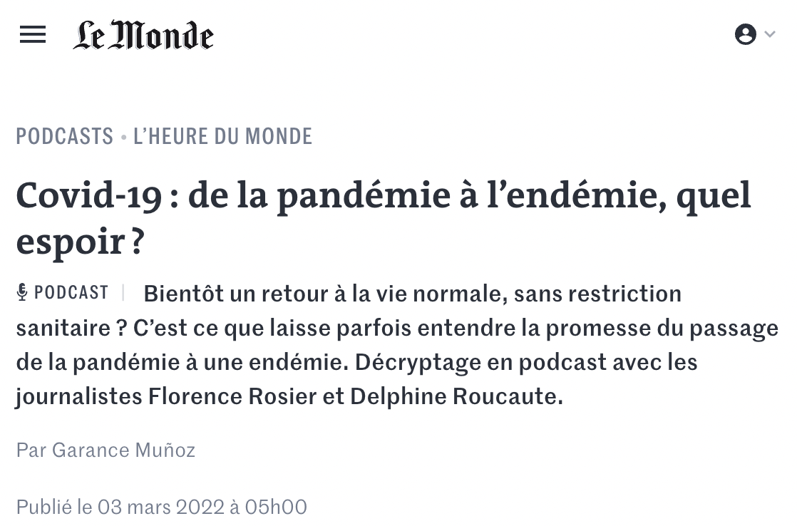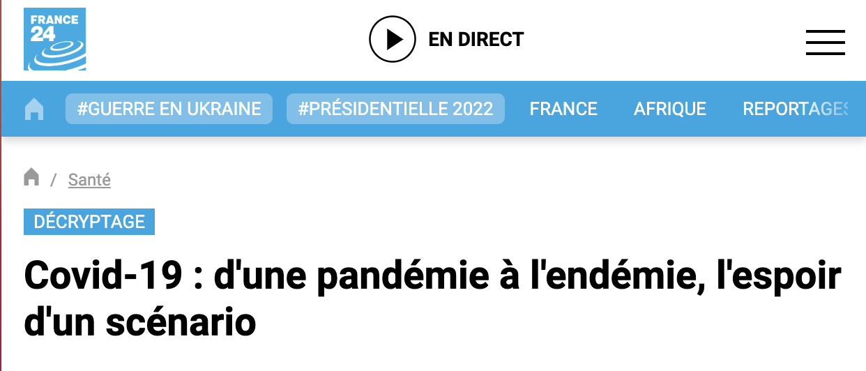 e fait de dire que ça va faire partie du décor, comme les saisons", et poursuit : "Dans les titres sur le Covid endémique, il y a le mot «espoir». Mais l'endémie, ce n'est pas nécessairement l'espoir ! Certaines sont très létales,