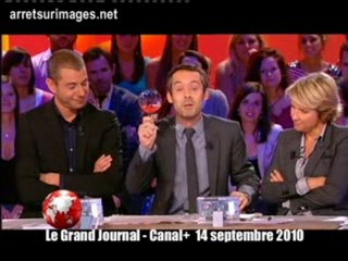 "Tout le monde est forcément au courant, sauf une personne" continue l'animateur, en visant l'invité du Grand Journal et président du groupe UMP à l'Assemblée Nationale Jean-François Copé, que l'on voit alors déclarer sur France 2 "Je ne suis absolument pas au courant de cette histoire".