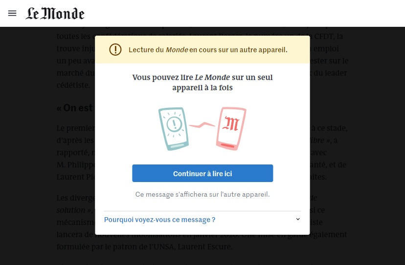 "Vous pouvez lire Le Monde sur un seul appareil à la fois"