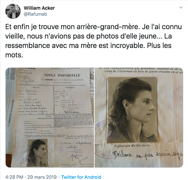 "J'ai twitté la photo anthropométrique de mon arrière-grand-mère"