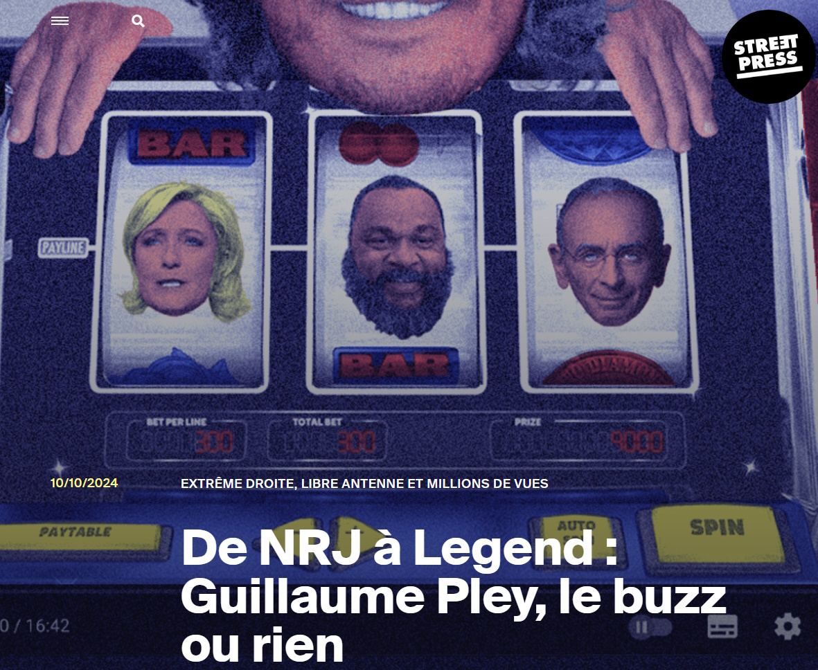 "On a une stratégie de presse assez classique avec des communiqués etc., et quand on souhaite attirer l'attention sur un sujet qui nous intéresse, qui plus est auprès de décideurs de la communication et du marketing, c'est important de travailler main dans la main avec la presse spécialisée", commente auprès d'Arrêt sur images le patron d'Influx, Manuel Diaz. Mettant en avant une commande du sondage chez Odoxa antérieur à l'enquête de StreetPress (qui racontait comment "la success story de l'ancien trublion de la radio est ternie par des casseroles"), il conteste fermement l'idée que ce publireportage puisse constituer une quelconque réponse. "On l'a vu, on l'a lu, c'est leur point de vue et ils ont le droit de l'exprimer, mais nous, ce qui nous intéresse, c'est Legend. Leur article est sur Guillaume Pley, nous, notre article, il est fait pour Legend et toute l'équipe." Selon Manuel Diaz, l'important avec ces contenus publirédactionnels, "un peu comme les créateurs de contenus quand ils font une collaboration", est "que ça soit transparent pour le lecteur". Faire signer le texte de Stratégies par "Influx" le permettrait ici.