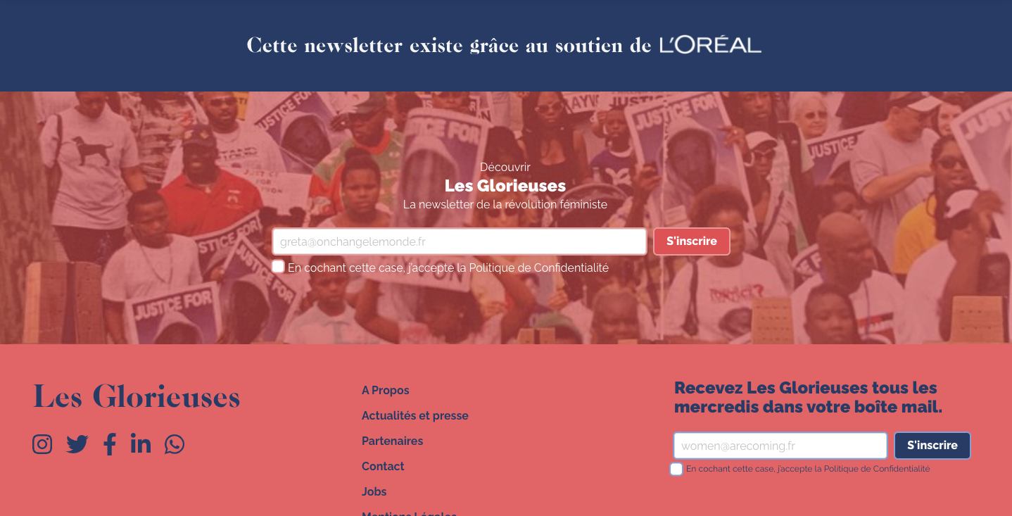 critiquent le capitalisme, mais le gros des revenus provient du sponsoring de plusieurs grandes marques, dont L'Oréal, un groupe du CAC 40 dont le soutien s'affiche en ouverture des lettres ou au bas du site des Les Glorieuses