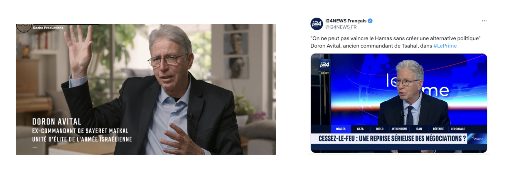 Certains employés de Roche s'interrogent également sur le profil des experts interviewés par le réalisateur. "Il manquait une diversité de points de vue, de visions différentes, les experts se ressemblaient tous, se souvient l'un d'entre eux. Ce sont des Israéliens issus des milieux militaires ou du renseignement, actuels ou anciens…On s'est dit que France Télévisions réagirait et que venant du diffuseur, ça aurait plus de poids". Tous sont remerciés nommément dans le générique de fin du film, une pratique pourtant peu courante. Trois des quatre experts interrogés dans le film sont d'ailleurs régulièrement invités sur i24NEWS, à savoir Doron Avital, ex commandant de Tsahal, Michael Kobi et Ami Ayalon, anciens du renseignement intérieur israélien. Leurs analyses devant la caméra de David Korn-Brzoza ne sont pas inédites, comme le prétend la communication autour du film : une enquête interne à Tsahal les avait déjà rendues publiques en février 2025. Contactée par Arrêt sur images, France Télévisions n'a pas répondu à notre demande d'interview.