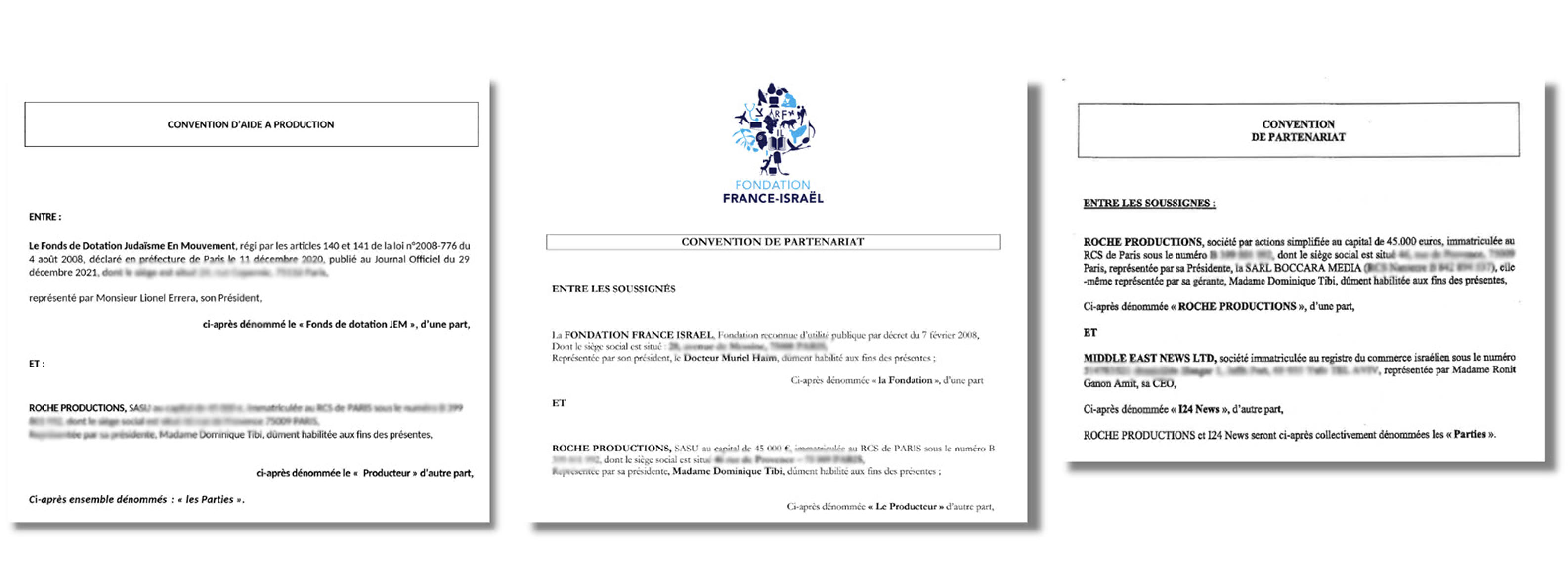 La convention signée entre Roche Productions et Judaïsme en mouvement le 30 mai 2025 indique que l'association cultuelle a pour objet "de soutenir un judaïsme ouvert et éclairé". Quant à la Fondation France-Israël, créée en 2005 par le président de la République Jacques Chirac et le Premier ministre israélien Ariel Sharon, son but est "d'améliorer la communication entre les deux sociétés civiles des deux pays afin de pallier le déficit accumulé d'image et de considération". Dans son message, Dominique Tibi ajoute : "Ce film a été réalisé par David Korn-Brzoza, qui a bénéficié d'une liberté éditoriale totale du début à la fin du projet. Aucun financeur n'a eu le moindre droit de regard sur le contenu en dehors de France télévisions. Le documentaire a été majoritairement financé par France Télévisions et le CNC, garants de la liberté de création et de l’exigence éditoriale du service public." Mais encore : "La part de financement apportée par deux fondations cités dans un article de Télérama représente une contribution très minoritaire du budget total. Ce type de partenariat privé permet de boucler un financement dans la production culturelle et documentaire, sans que cela n'affecte en rien l'indépendance des auteurs."