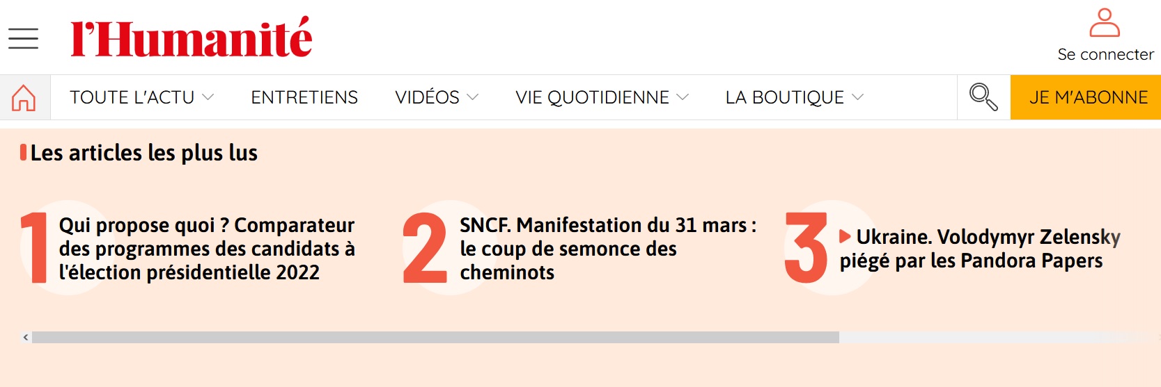 Il est l'un des articles les plus lus sur le site web de l'Humanité, et ce depuis plusieurs semaines maintenant, tout en étant aussi largement partagé sur les réseaux sociaux. Titré "Ukraine. Volodymyr Zelensky piégé par les Pandora Papers", il remonte pourtant… au 7 octobre 2021. "J'ai une petite idée de ce qui peut plaire à une partie plutôt russophile de nos lecteurs", commente auprès d'Arrêt sur images